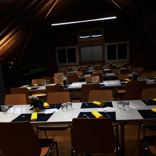 Der Charme einer früheren Bauernscheune, verbunden mit modernen Elementen schaft eine warme und wohlfühlende Atmosphäre. Unsere rustikale Scheune kann man für Geschäftsanlässe, Geburtstagsfeste, Ausstellungen oder Hochzeit- und Tauffeiern etc. mieten. Sie bietet bis zu 50 Personen Platz.